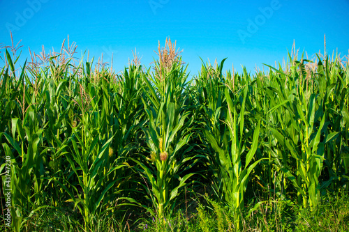 © Daniel Vincek, Obraz premium Corn Field Against Blue Sky