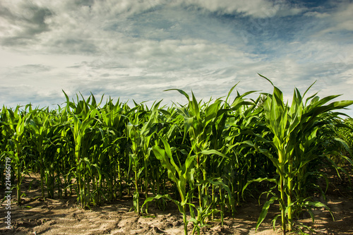 © darekb22, Fototapeta premium Corn field and gray clouds in the sky