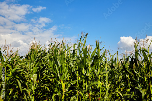 © ZoomTeam, Obraz premium Corn field and sky with beautiful clouds / Corn field