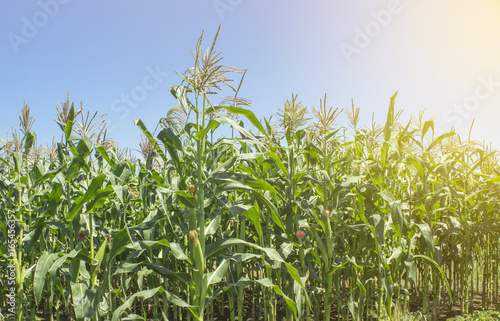 © Nikolay, Fototapeta premium Corn field at sunset of the day