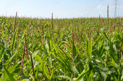 © Kim, Fototapeta premium Corn field, the maize is not ready for harvest yet.