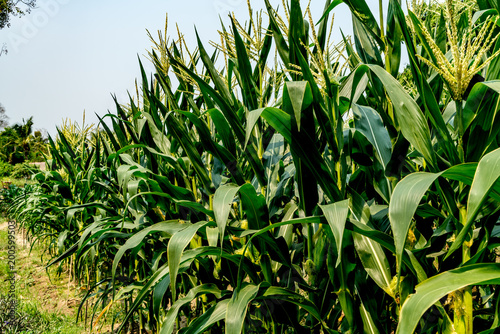 © santagig, Naklejka premium Corn field with sky background
