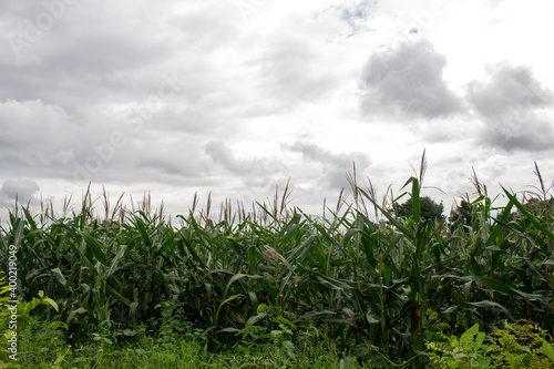 © THANATTHANAN, Obraz premium Corn garden with cool gray sky