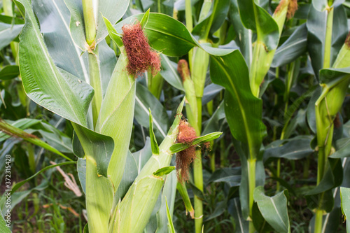 © cherryandbees, Obraz premium corn on corn field outdoor daytime