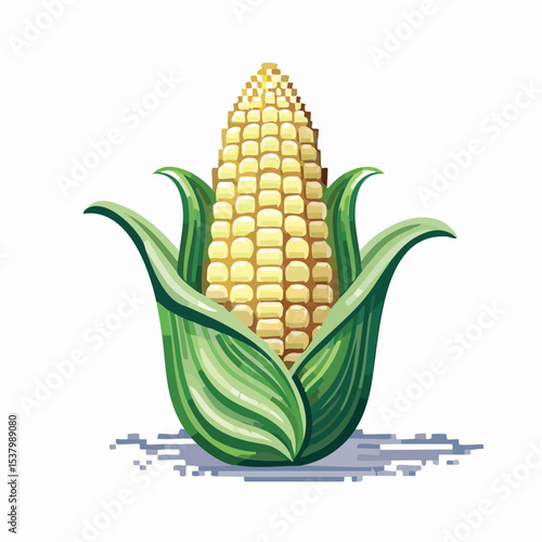 © Moch, Obraz premium Corn Pixel Art Isolated on White Background in Retro 8-Bit Style