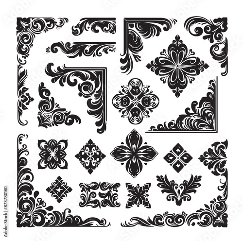 © MSTMIM, Naklejka premium Corner Border Collection Elements Icons Set Vector