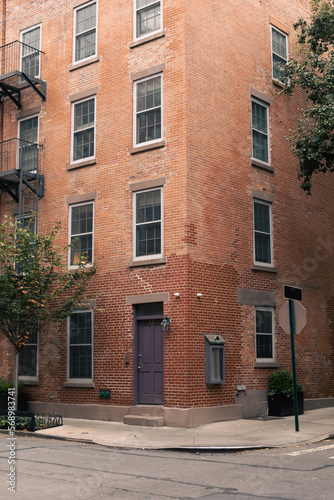 Naklejka premium Corner of brisk building on street in New York City.
