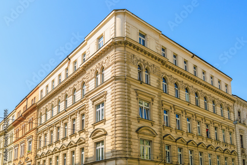© Iurii Gagarin, Fototapeta premium Corner of the house of classical European architecture of the old cozy tourist city. Background with selective focus