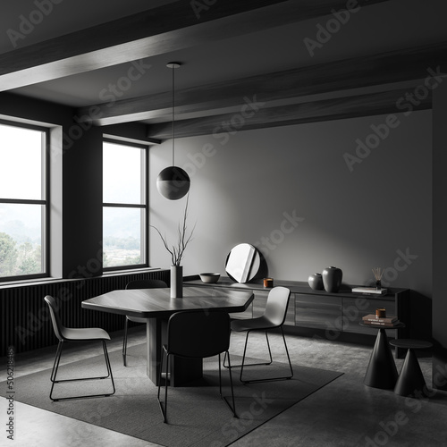 © ImageFlow, Fototapeta premium Corner view on dark empty living room interior