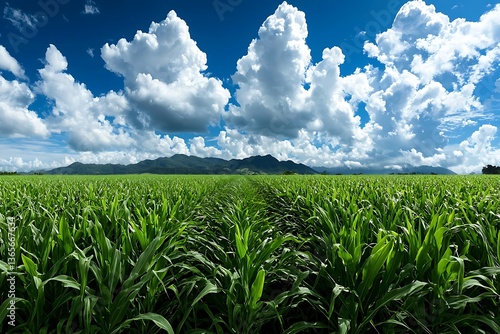 Obraz premium Cornfield, Sky, Mountains