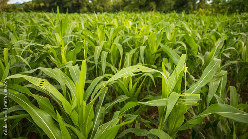© Happy Photo, Obraz premium Cornfield thriving under bright sunlight in summer