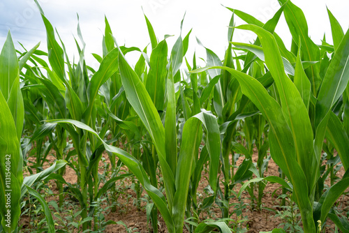 © Mentor, Obraz premium Cornfield with a cloudy sky in spring