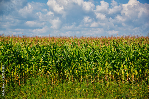 © Bob, Obraz premium Cornfield with blue sky and clouds