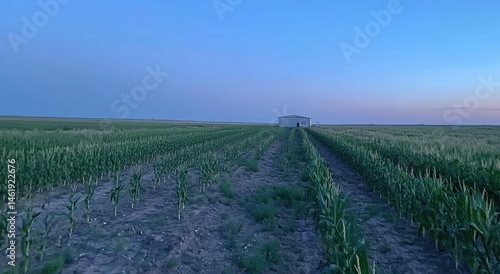 © Abdi, Obraz premium Cornfield with water tank at dusk