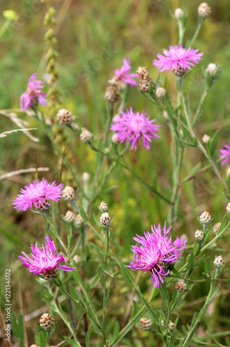 © orestligetka, Obraz premium Cornflower Centaurea jacea blooms in a meadow among grasses