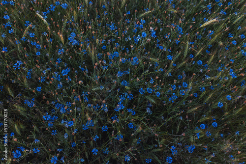 Fototapeta premium cornflowers and wheat top view