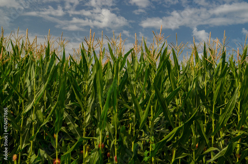 © sea and sun, Fototapeta premium corns corn field background blue sky clouds green