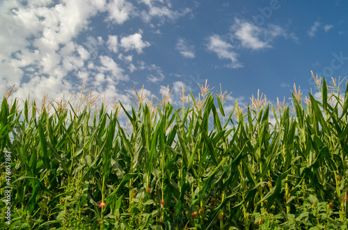 © sea and sun, Fototapeta premium corns corn field background blue sky clouds green