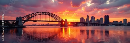 Obraz premium Coronado Bridge, San Diego sunset skyline Golden hour cityscape reflection , sunset, image