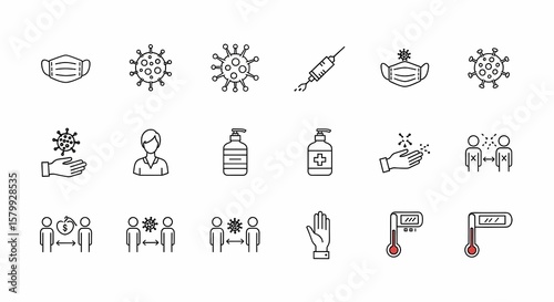Fototapeta premium Coronavirus Prevention Icons: Hygiene, Safety, and Health Measures