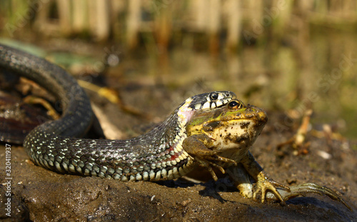 © Artem Onoprienko, Naklejka premium Coronavirus source sample with a snake eating a frog