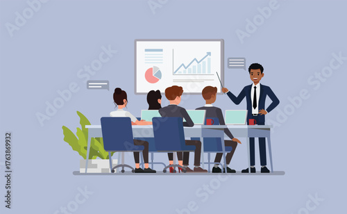 Obraz premium Corporate Employee Training Scene character vector illustration design.