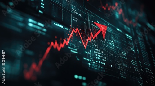 © Sampao, Obraz premium Corporate finance report visualized with digital analytics, a histogram, and a bold red success arrow.