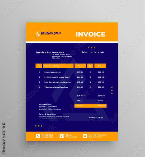 © Graphics Theme, Naklejka premium Corporate modern invoice design template set with blue and yellow colors.
