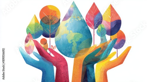 Fototapeta premium Corporate social responsibility illustration flat design front view sustainability theme water color vivid.