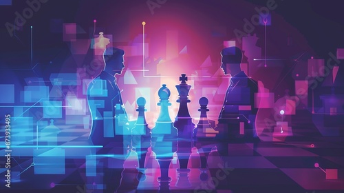 Fototapeta premium Corporate strategy and innovation illustration featuring blurred business elements, emphasizing market competition, technology growth, and successful business strategies