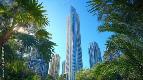 © wahyu, Naklejka premium Corporate tower with clear sky background
