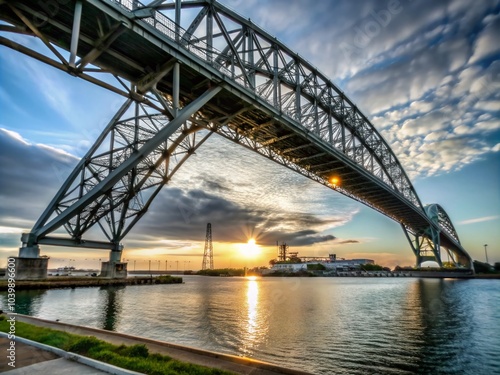 Fototapeta premium Corpus Christi Harbor Bridge Overview - Stunning Steel Box-Girder Arch Bridge...
