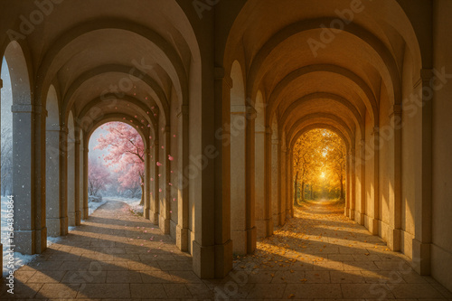 © youngil kang, Fototapeta premium Corridor of Glowing Arches