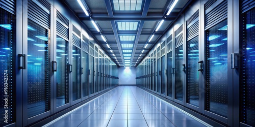 Fototapeta premium Corridor of server room with server racks in datacenter, datacenter, server...