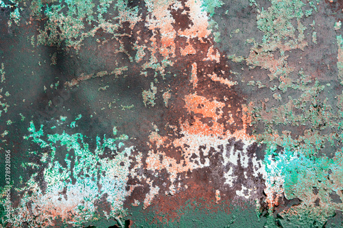 Obraz premium Corroded and peeling paint on rusty metal texture. Background