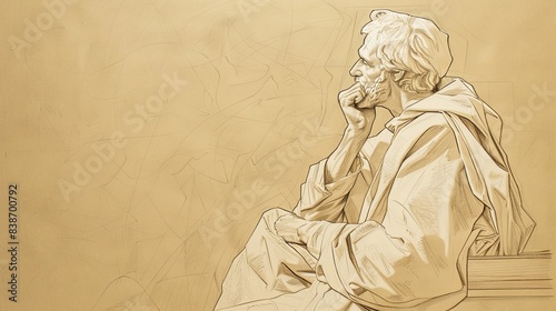 © T Studio, Naklejka premium Corruption and Salvation: Psalms 53 Biblical Illustration, God's Judgment and Hope, Beige Background, copyspace