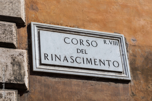 Obraz premium "Corso del Rinascimento" restored marble roman inscription, Rome, Italy.