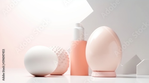 Fototapeta premium Cosmetic Bottle Set for liquid, cream, gel, lotion. Beauty product package, blank templates of transparent and white plastic containers: dispenser, cream jar, tube. AI generative