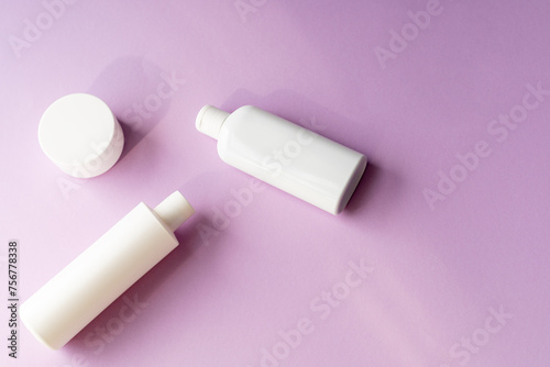 Fototapeta premium Cosmetic packaging containers for haircare, Set of unbranded bottles, Beauty...
