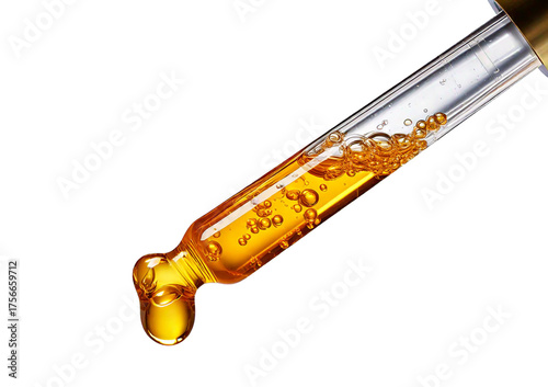 © Anan, Naklejka premium Cosmetic pipette with drops of cosmetic oil isolated on transparent or white background