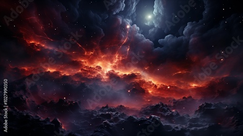 Fototapeta premium cosmic background of supernova nebula and stars, glowing mysterious universe