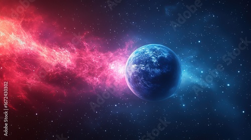 © ely, Obraz premium Cosmic Background with Earth and Nebula, Space - themed Visual for Digital Projects