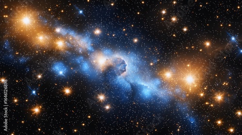 © Sasirat, Fototapeta premium Cosmic Background with Shining Stars and Vibrant Stardust