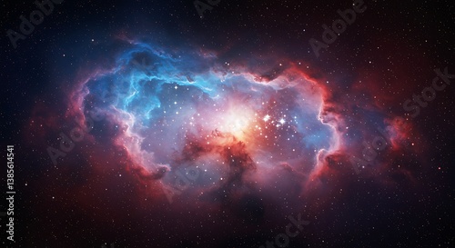 © CamTu, Fototapeta premium Cosmic Bloom: Crimson & Azure AI Generated