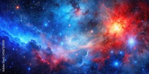 © Praphunsak, Fototapeta premium Cosmic blue and red galaxy background with stars and nebulas