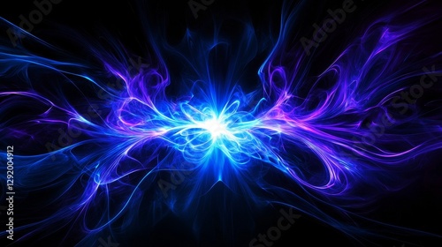 Fototapeta premium Cosmic Blue Light Burst Abstract Art - Symbolizing energy, power, creation, infinity, and cosmic wonder, this abstract artwork features a vibrant blue light burst against a black background