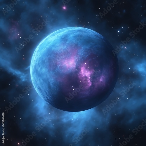 © Duit, Fototapeta premium Cosmic blue planet in nebula