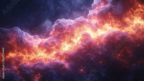 Fototapeta premium cosmic clouds blaze with fiery reds and cool blues in a dramatic interstellar display
