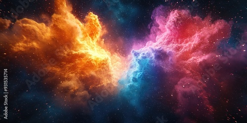 © MrHamster, Fototapeta premium Cosmic Clouds of Orange, Blue, and Pink in a Starry Sky