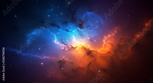 © CamTu, Fototapeta premium Cosmic Collision: A 3D Nebula Render AI Generated